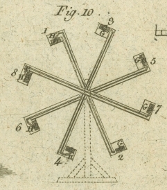 anwenden; jede Stange muß durch den Mittelpunkt der Achse N laufen, und sich in allen Richtungen mit jeder andern unter rechten