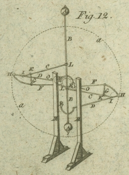 zwei gleich schwere Gewichte an den Enden der beweglichen Stange BB, welche in einem Loche oder Einschnitte durch