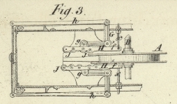 Winkelhebel G drehen; und das innere Ende f* der Seitenplatten wird durch eiserne Stangen x, Fig. 3, welche an die