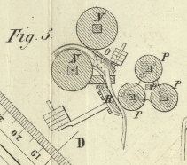 das Tuch in die Rinne des großen Cylinders, wo es zwischen diesem und den kleineren