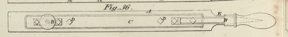 stellt dieses nützliche Instrument in der Seitenansicht, Fig. 36 im Grundrisse