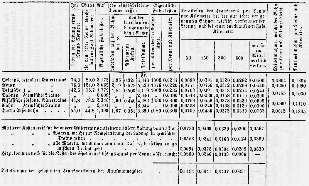ergibt sich Folgendes: Die eigentlichen Fahrtkosten per Tonne und Kilometer weichen bei sämmtlichen besprochenen