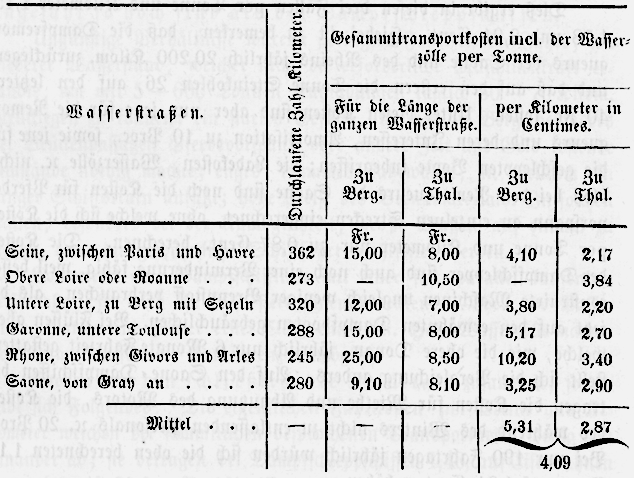 auf der Saone, welche 600 Tonnen schleppen, betragen per durchlaufenen Kilometer Wasserstraße 6,92 Fr.; jener des Rheins
