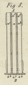 den Ständer, welcher die Form trägt, in zwei Endansichten, Fig. 8 im Grundrisse dar.