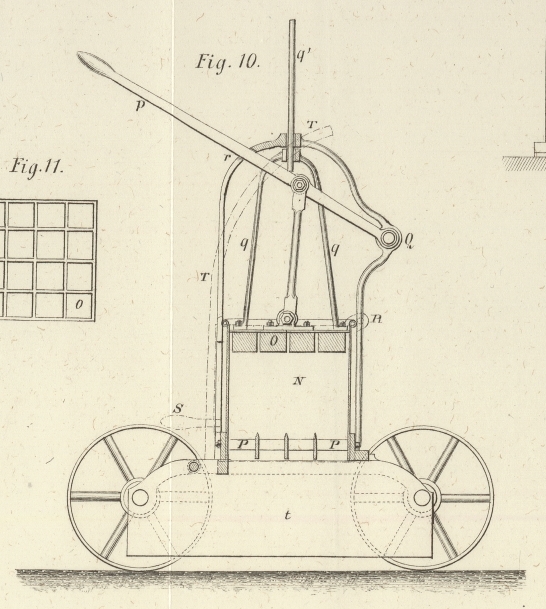 Der Kolben O ist außerdem mit vier Stäben q versehen, die auf jeder Ecke desselben befestigt sind