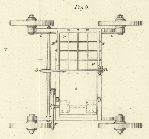 10 zeigt, an die beiden Räder befestigt, welche sich auf der Seite des