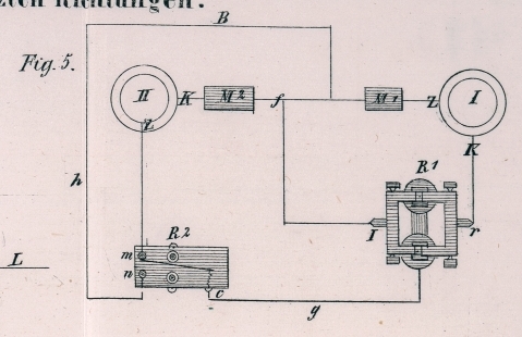 mit den Multiplicationsrollen des Schreibapparats M₁, dadurch mit dem Kupferpol K der