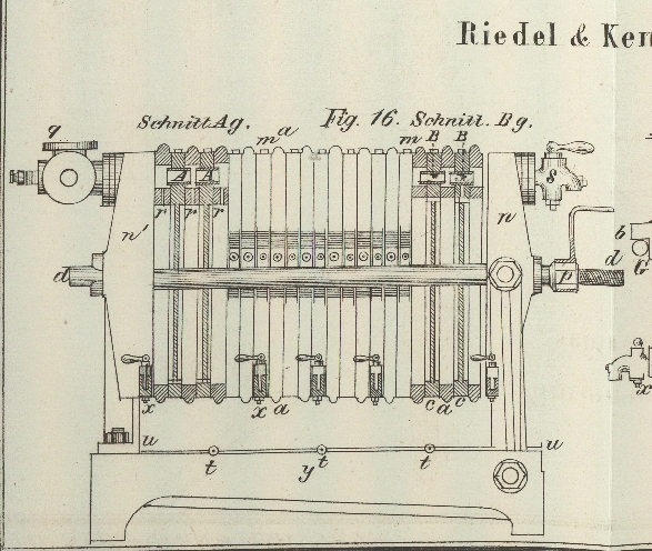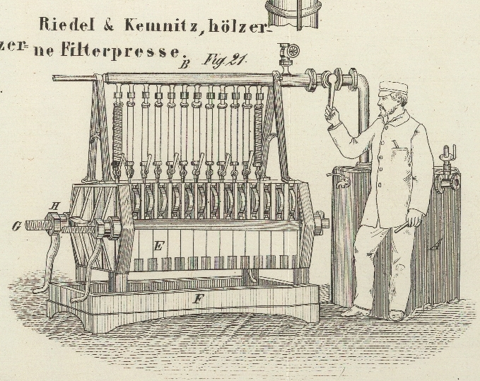 Hölzerne Filterpresse von Riedel und Kemnitz. –