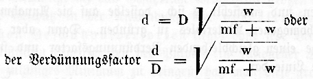 in die letzte Gleichung substituirt, erhält man den Verdünnungsfactor d/D = 0,8811 (nach Thomée 0,8847), ungefähr die