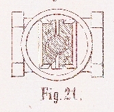 Demselben Zwecke entspricht auch der Absperrschieber in Fig. 20 und 21. Anstatt