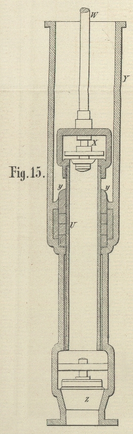kann. Das Kolbenrohr hängt an einem Bügel, der am Pumpengestänge W befestigt ist. Mit Y ist