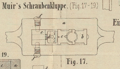 17–19 zeigen verschiedene Ansichten der Schraubenkluppe von Muir, aus denen zu entnehmen ist, daß die Stellschraube