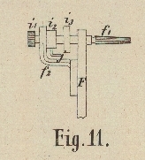 Drehung der Spindel um ihre Achse einleitend. Das äußerste verzahnte Rädchen