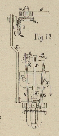 skizzirt. In Folge seiner Verbindung durch die Schubstange L', Kurbel t',