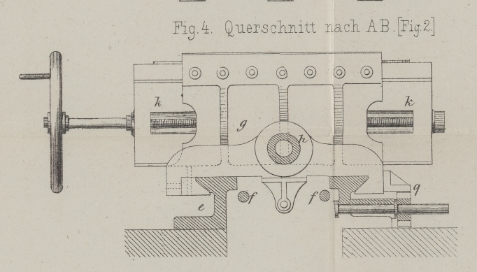 durch eine mit dem Schlitten g verbundene Kolbenstange