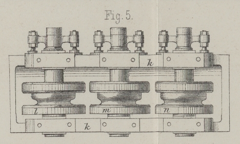Walzenrolle c für die innere Fläche der Bandage d sich befindet. Die arbeitenden Theile der Maschine
