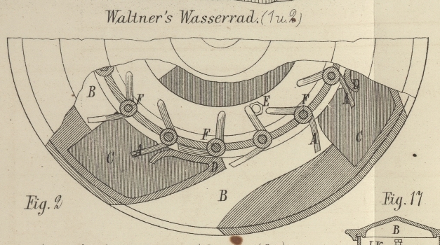 Das Waltner'sche Wasserrad soll andern gegenüber den Vorzug haben, daß es auch in
