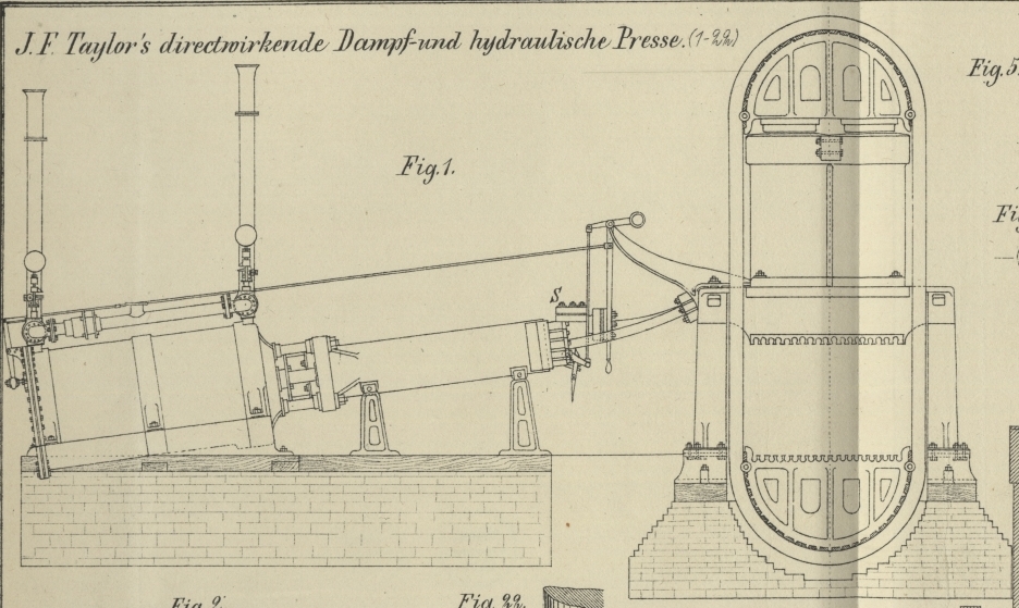 J. F. Taylor's direct wirkende Dampf- und hydraulische Presse für