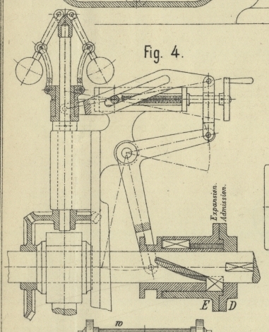 werden, um verschiedene Füllungsgrade zu erzielen, während D, auf der Schwungradwelle festgekeilt, Voreinströmung und lineares