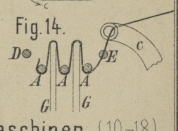 genügende Längen des Fadens dadurch, daſs letzterer zuerst auch um die Stifte D, E herum gelegt worden war. Die drei Schleifen auf