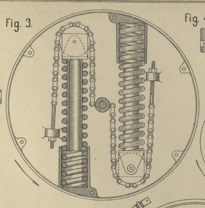 mitzunehmen, vermögen dies jedoch erst dann, wenn die Federn der Kettenrollen einen