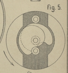vorstehenden Zapfen eine Rolle aufgesetzt (in Fig. 2