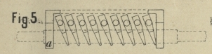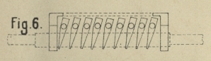abwechselnd zwischen den festen Stäben vorn und hinten auf beweglichen Trägern e und f ruhen. Der Träger