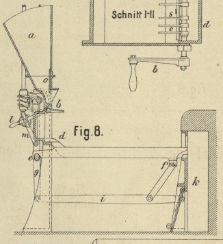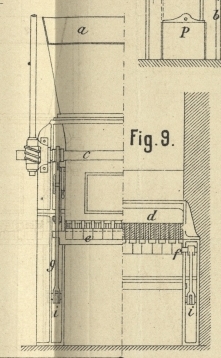 versehen ist. Im Ruhezustand nimmt diese Vorrichtung die punktirte Stellung c1 ein; soll der Rost