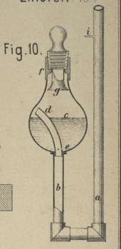 durch das geneigte Röhrchen d in den Ballon c getrieben wird; das Gas kann nun ungehindert zum