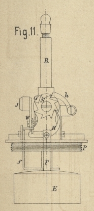 Arm mit Gegengewicht o von dem Stift v abgehoben wird, bis er die Spitze des Zahnes passirt
