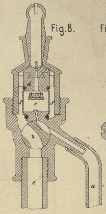 15 Taf. 18) ein Gehäuse G für den Hahn K an. Letzterer ist zweimal rechtwinklig durchbohrt und