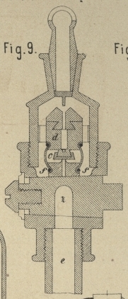(Fig. 6 Taf. 18) in den kegelförmig ausgehöhlten Raum n treten, wodurch der Gasdruck um ⅓ vermindert wird.