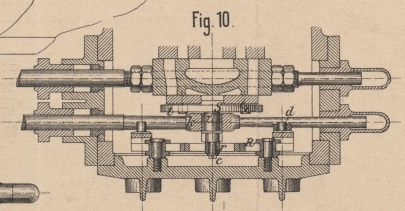 Welle befindlichen Excenter d und e und damit eine Verstellung der Expansionsschieber.