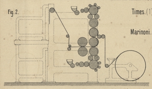 11). Die Druckplatten sind hier ebenso wie bei der Marinoni-Presse neben einander gelegt. Diese Maschinen haben keinen
