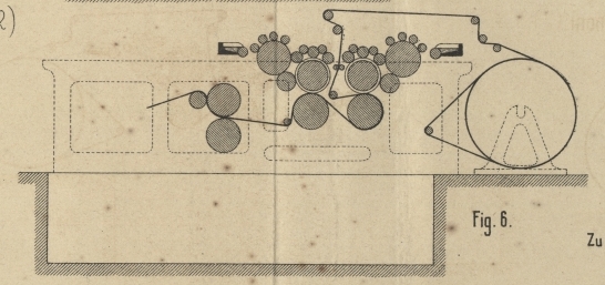 Theil des Falzapparates liegen unter den Druck- und Plattencylindern und unter dem