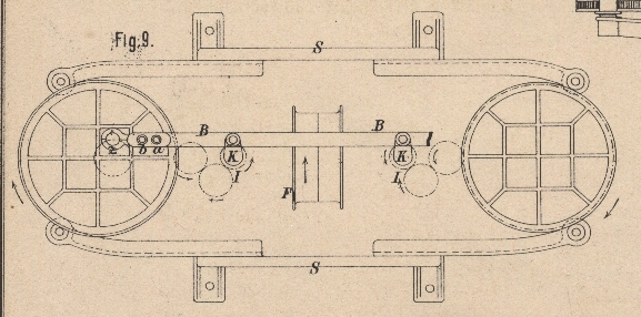 10 Taf. 9 zu entnehmen, daſs das symmetrische Gestelle S den ganzen, doppelt vorhandenen, also zur