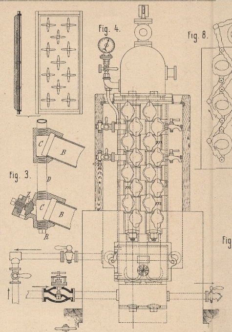 Druck stehende) Vorwärmer dienen und gleich der durch eine Eisenplatte gebildeten