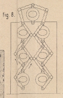 versehen ist. In diese greift das nach unten führende Verbindungsglied c und in letzteres wieder das nach oben führende Glied