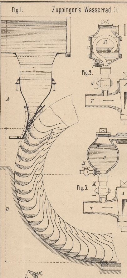 [Zuppinger's Wasserrad mit Actions- und Gewichtswirkung des