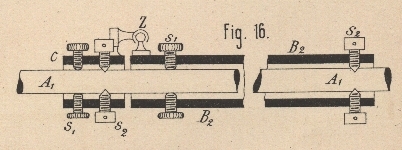 verbunden wird; das andere Ende ist durch lose Schrauben s1 nur centrirt, so daſs sich das Rohr