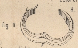Umfange die Verbindung beider Ringhälften nur durch den Streifen V hergestellt erscheint. Dieser Schnitt erhöht die Elasticität