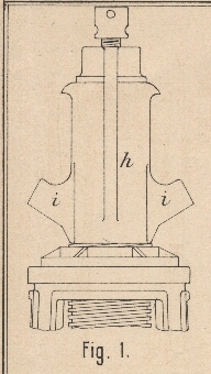 mittels des Kolbens b und der Platte c, welche durch die einfache Schraube l niedergeschoben werden, die Düse auf das richtige