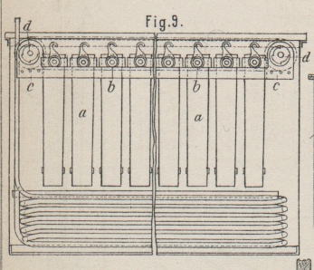 Nebenbei sei erwähnt, daſs die gerippten Röhren aus Messing hergestellt sind. Die