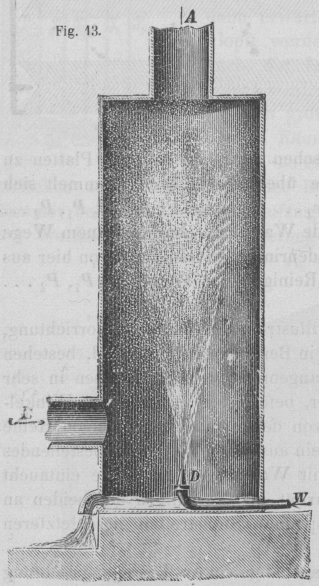 feinem Staubregen innerhalb eines weiten Gefäſses niederschlagen, wie es in Fig. 13 illustrirt ist. Hierbei strömt die Luft durch