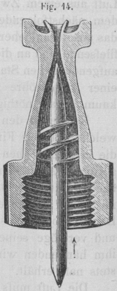 düsenförmigen Mundstücke und einer darin befindlichen Schraubenspindel mit breiter