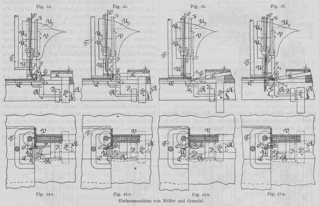 Textabbildung Bd. 290, S. 224Einfassmaschine von Müller und Grundel. Zur Ausführung dieses Verfahrens ist es erforderlich, dass die Nähmaschine