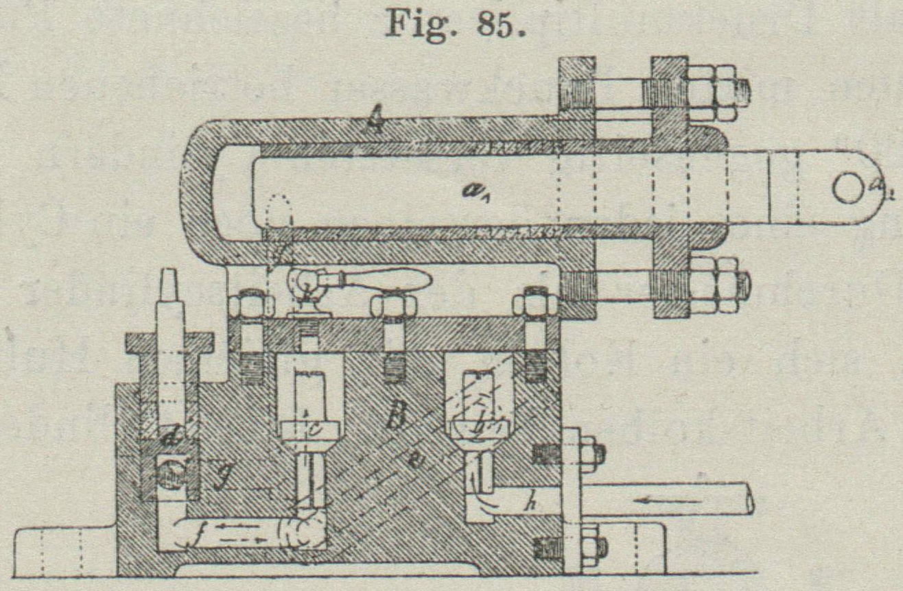 Manchester mit hinter einander liegendem Dampf- und Pumpencylinder zeigt die Industries and Iron entnommene Abbildung (Fig. 92). Der Dampfcylinder A ist mit dem Pumpencylinder B durch ein