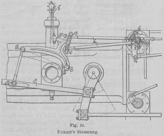 B trägt, welcher mittels des bei F gerade geführten Lenkers BF mit dem Regulatorgestänge verbunden ist.