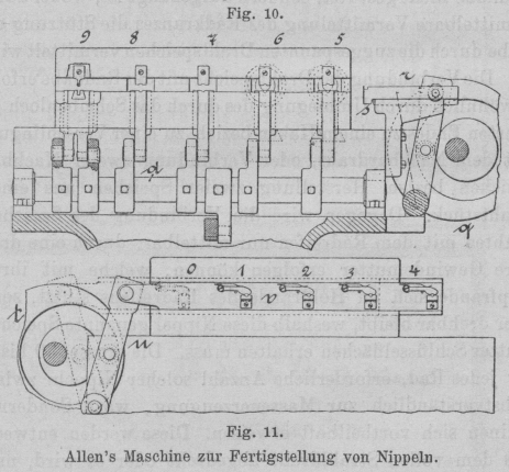 Allen's Maschine zur Fertigstellung von Nippeln.