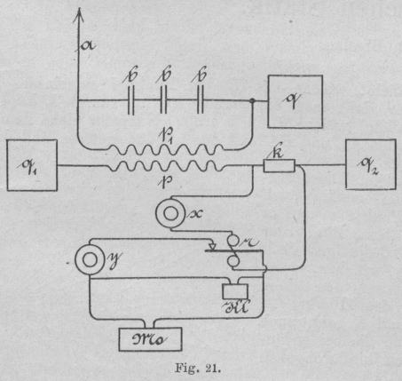 Erzeugung der elektrischen Wellen ausnutzt, deren Frequenz eine viel geringere ist